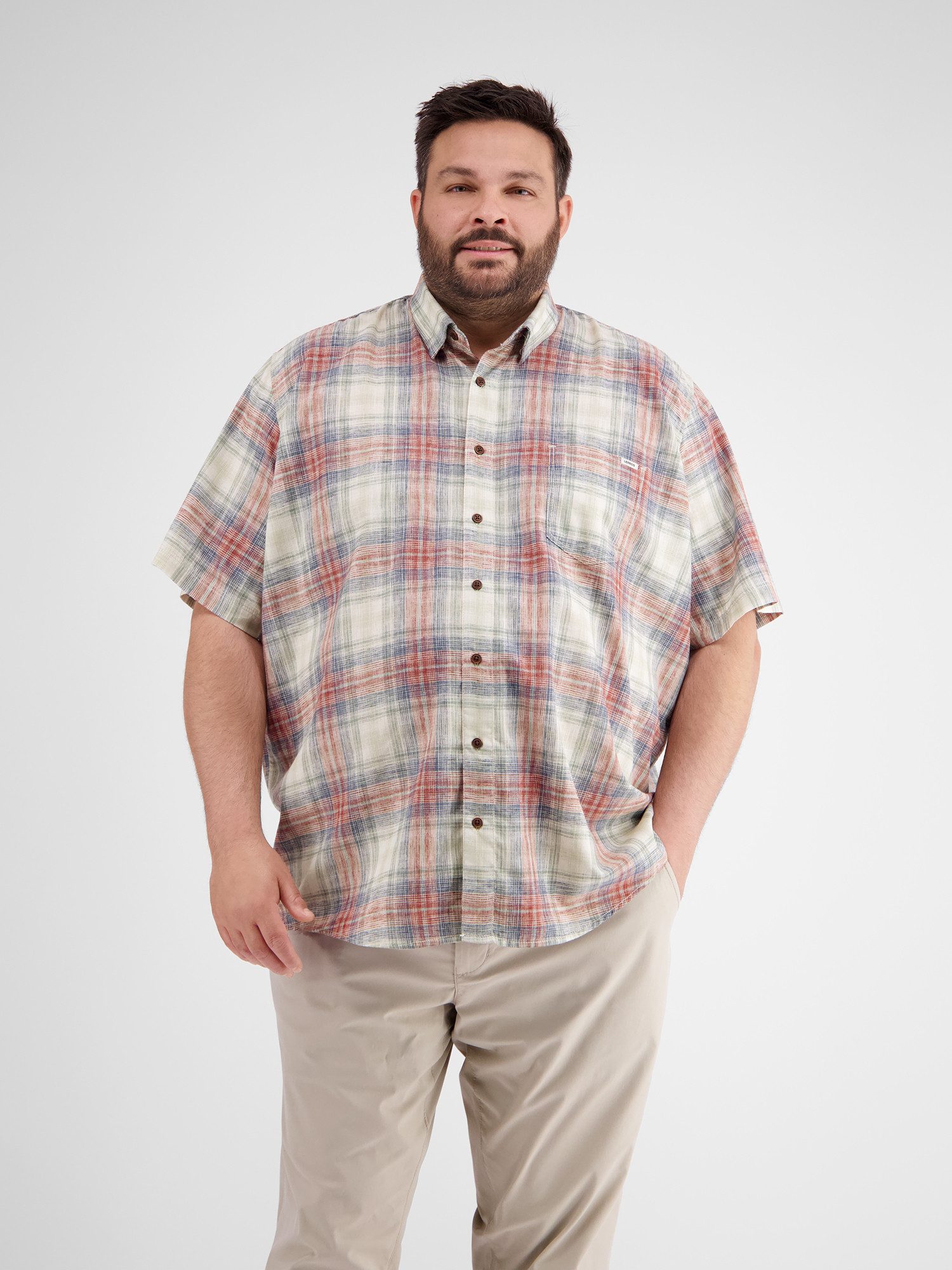 Lerros Overhemd met korte mouwen LERROS Geruit overhemd met korte mouwen in grote maten
