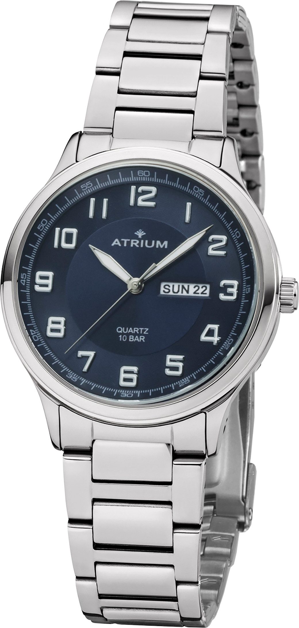 Atrium Kwartshorloge Polshorloge, herenhorloge, roestvrijstalen band, analoog, weekdag, dag