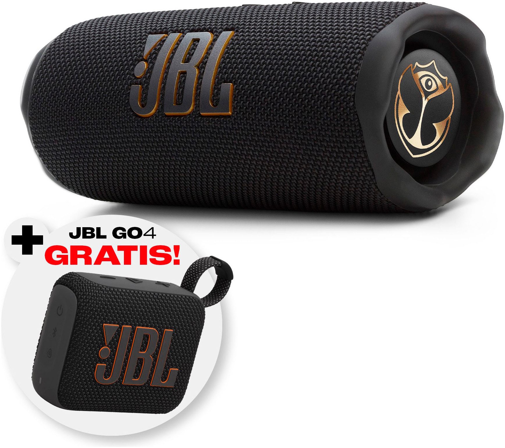 Leveringssamenstelling | JBL Go 4, Type-C-kabel, Snelstartgids, JBL Flip 7 Tomorrowland, Karabijnhaak, Snelstartgids |
