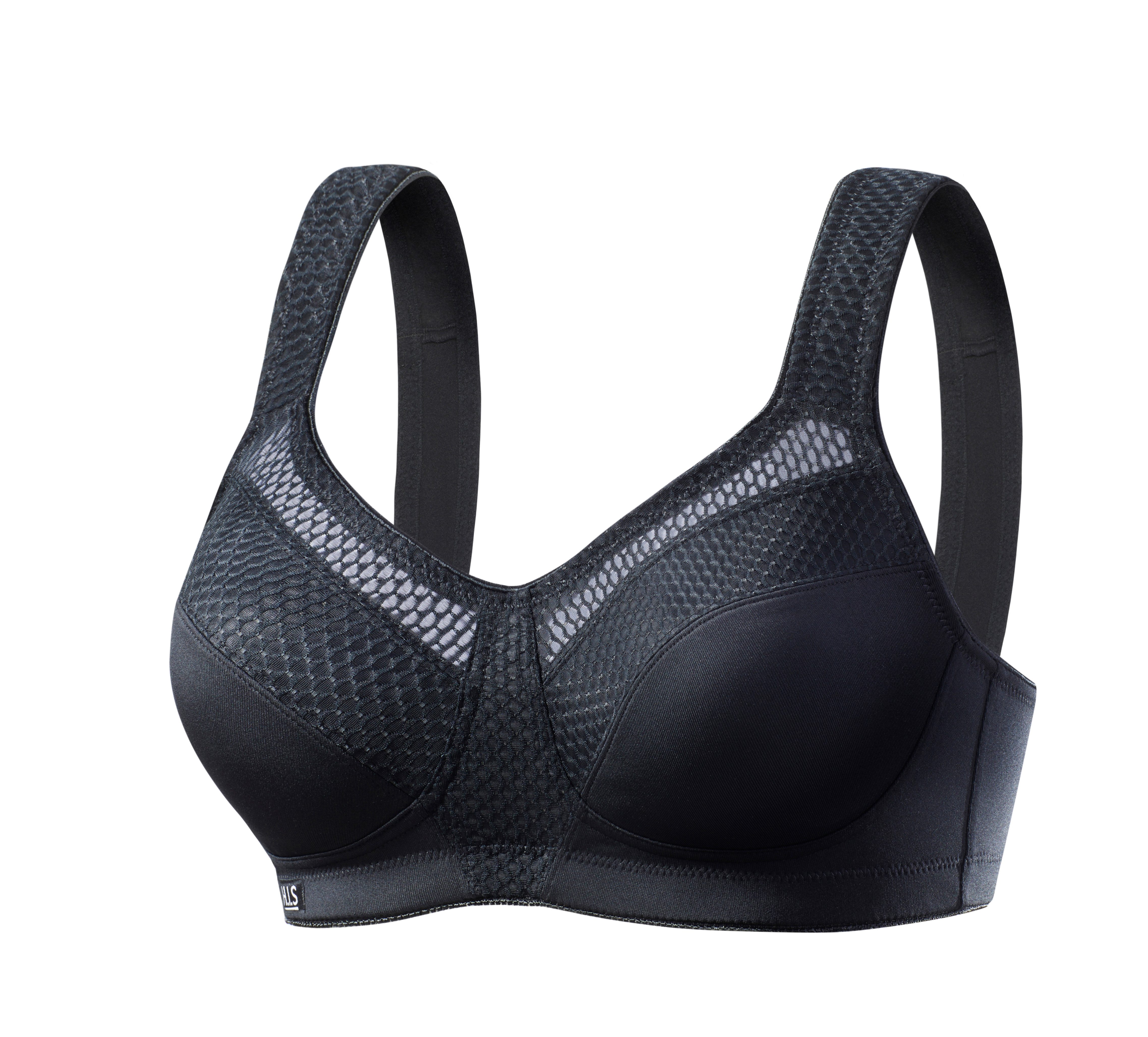 Met gedessineerde netinzetten. Van hoogwaardig COOLMAX®-materiaal voor optimaal vochttransport. Brede, gevoerde bandjes en brede achterkant voor meer draagcomfort – ook in de grote maten. Verstelbare achtersluiting. Gemiddelde belasting. Van 90% polyester (COOLMAX®), 10% Elastan.