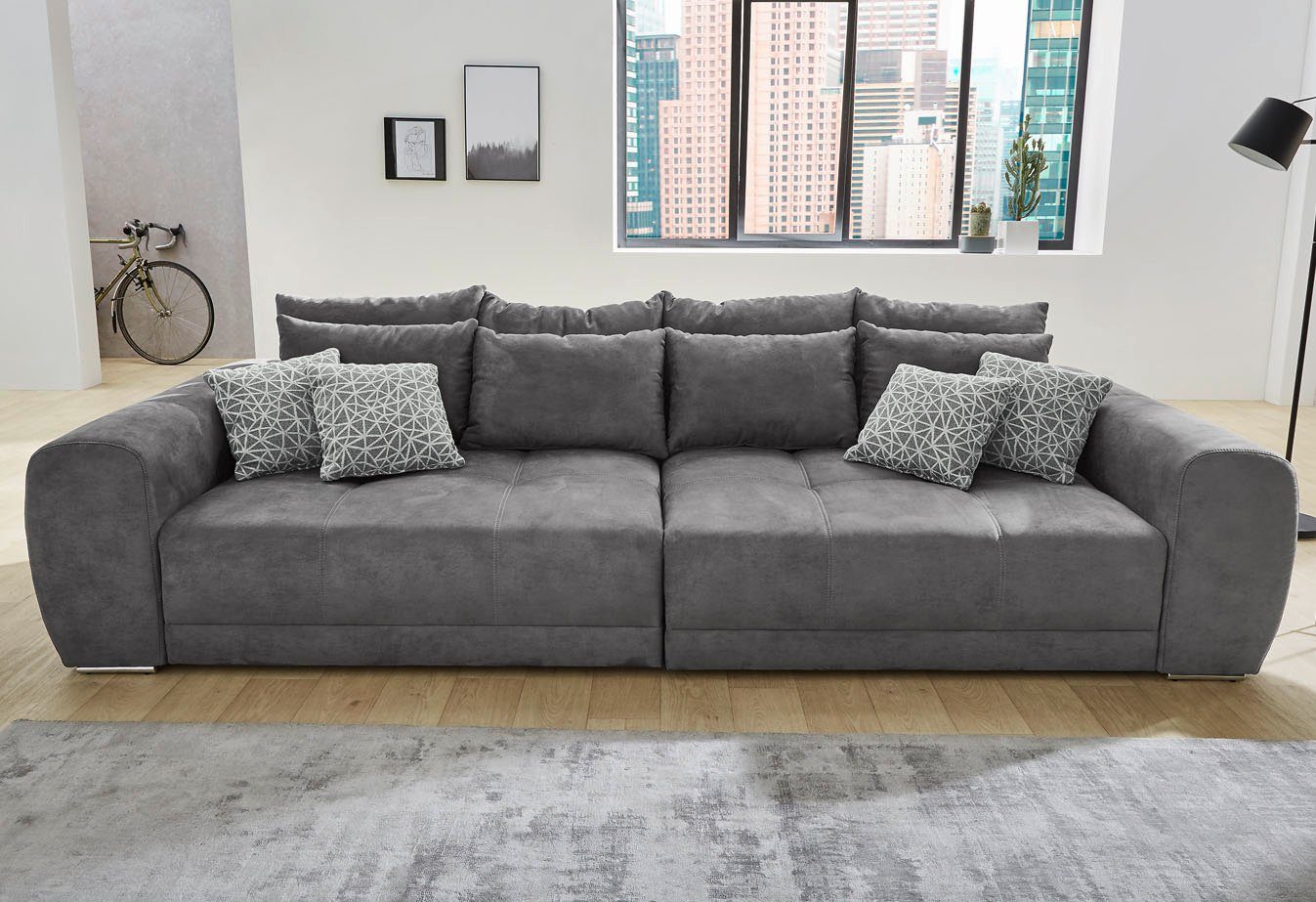 - CHARMANT STIKSEL IN HET ZITGEDEELTE - Het fijne stiksel benadrukt de moderne look, zet elegante accenten en geeft de Big-Sofa een uitnodigend-gezellige toets.