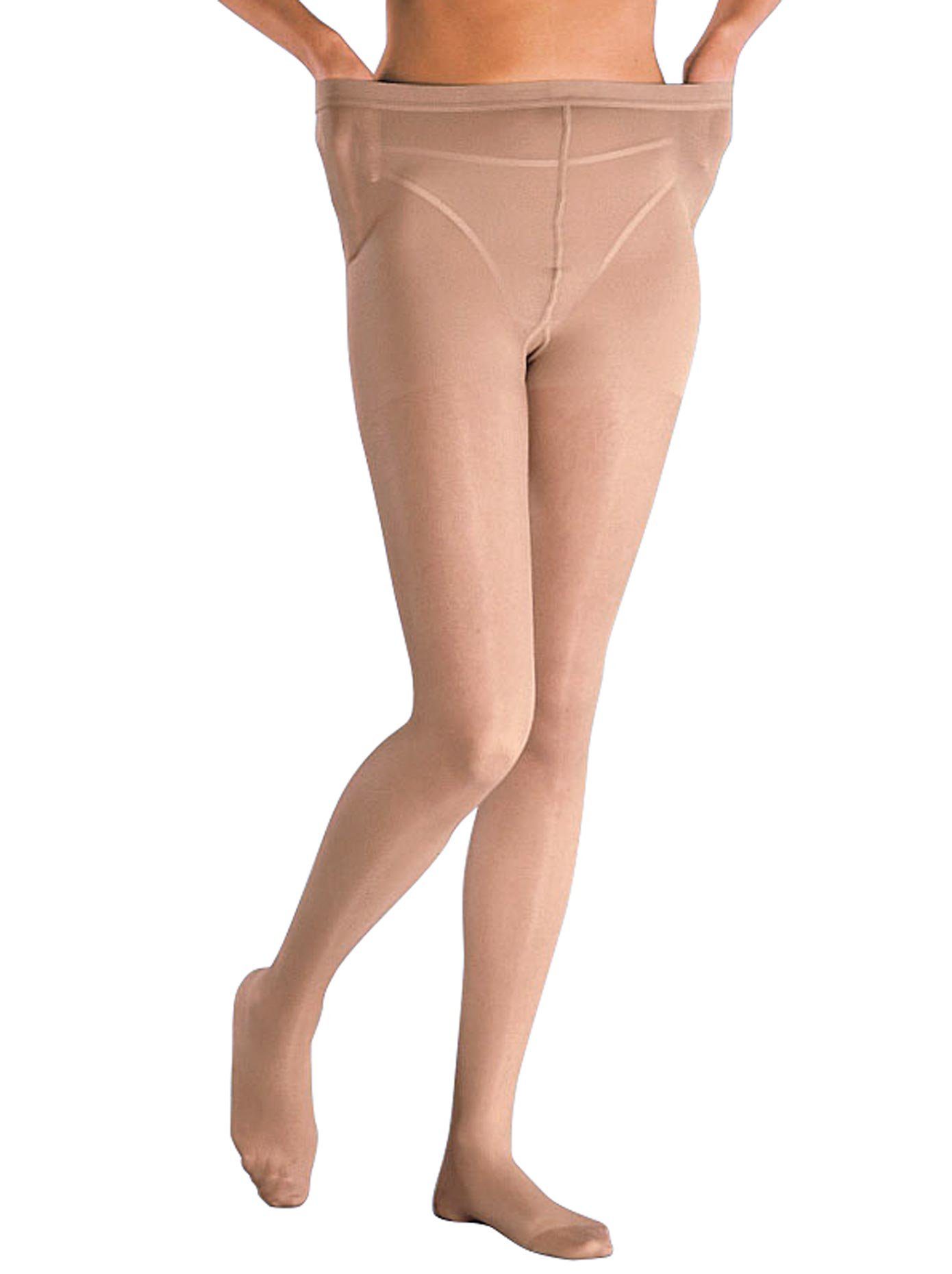 Steunpanty. Uitstekend geschikt voor extra brede heupen. In twee sterkten: 70 den van 82% polyamide, 18% Elastan. Helpt bij vermoeide, pijnlijke benen en opgezwollen gewrichten. 140 den van 77% polyamide, 23% Elastan. Nuttig bij slechte bloedsomloop vanwege problemen met de aderen. Een steunpanty vervangt geen doktersbezoek! Bij problemen met de aderen, trombose, etc. moet u zich wenden tot uw huisarts.