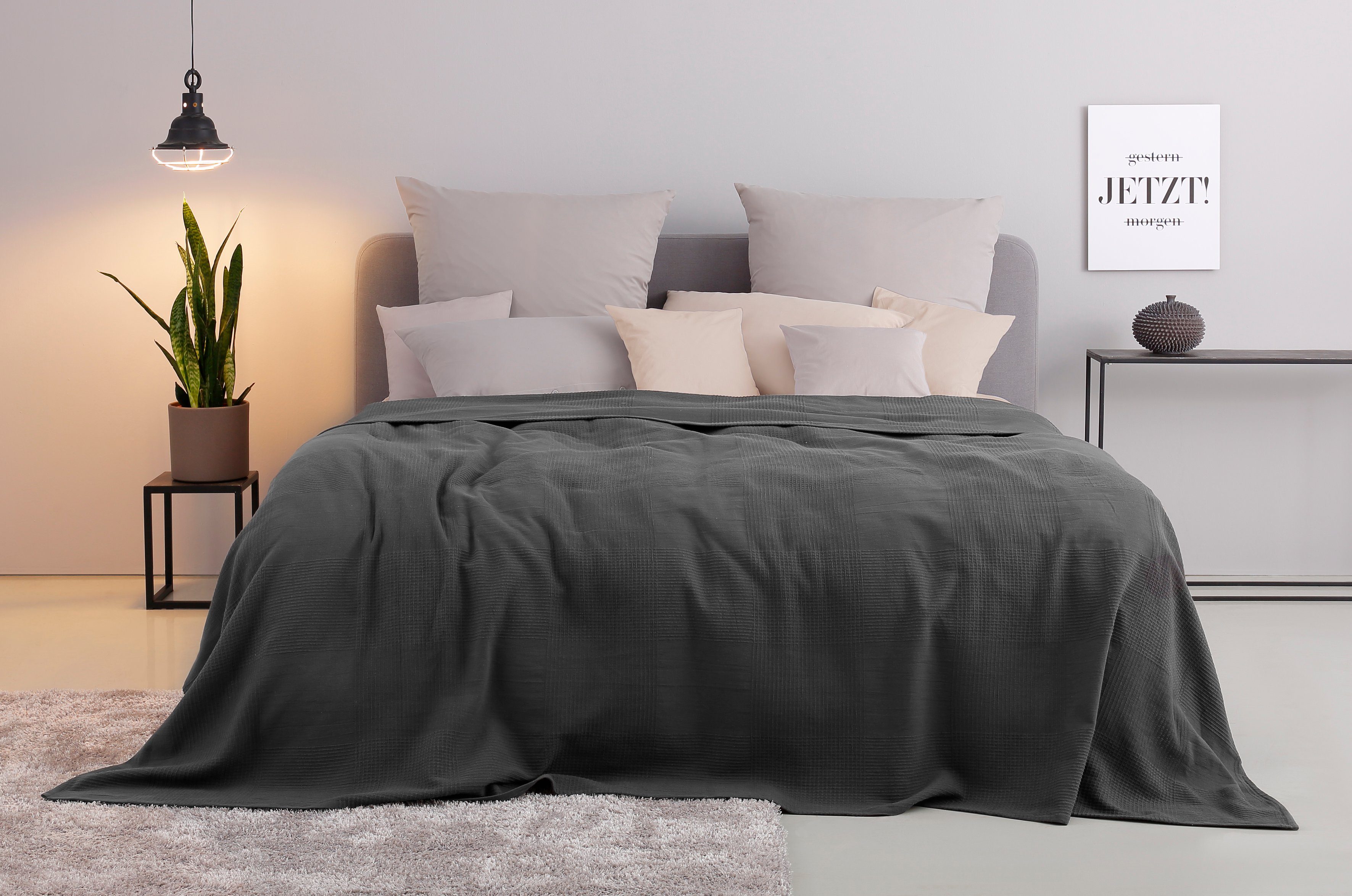 my home Sprei Mira lichte sprei van 100% katoen, uni foulard, zonder vulling