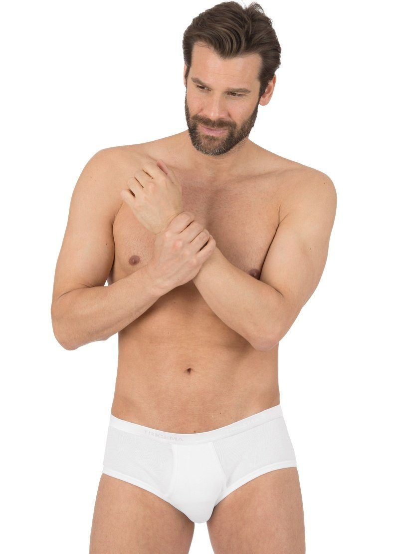 Korte herenslip De korte herenslip met gulp in het klassieke herenmodel komt meteen in dubbelverpakking in de klerenkast. Het is ook de moeite waard, omdat de slip voor heren uitstekende producteigenschappen bezit. De vormvaste fijne rib van 100% katoen zorgt voor de basis voor het frisse draaggevoel en de slijtvaste en onderhoudsvriendelijke eigenschappen. Daarmee beleven mannen van elke leeftijd elke dag het comfort van kwalitatief goed afgewerkt ondergoed van TRIGEMA. Op iedere naad zuiver afgewerkt en met praktische gulp en zachte elastische tailleband biedt de herenslip een comfortabel gevoel voor elke dag. Het korte model en de voortreffelijk hoge kwaliteit maken de klassieker steeds weer populair. De herenheupslip kan in stralend wit of diep zwart in dubbelverpakking besteld worden. Zo komen meteen 2 stuks huidvriendelijke herenslips voor levenslang gebruik in het dagelijks leven bij u thuis. Strijken: Heet ijzer Broek lengte: Kort Materiaal naam: 100% Katoen Samenstelling materiaal: 100 % katoen, ringgaren supergekamd Coupe: De perfecte pasvorm Sportsoort: Fitness / Wellness Drogen: Droog met een verminderde thermische belasting Wassen: Wassen in de machine 60°