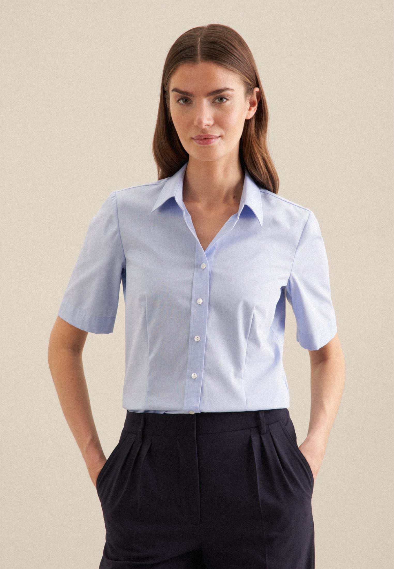 seidensticker Overhemdblouse Zwarte roos 1/2 kraag uni