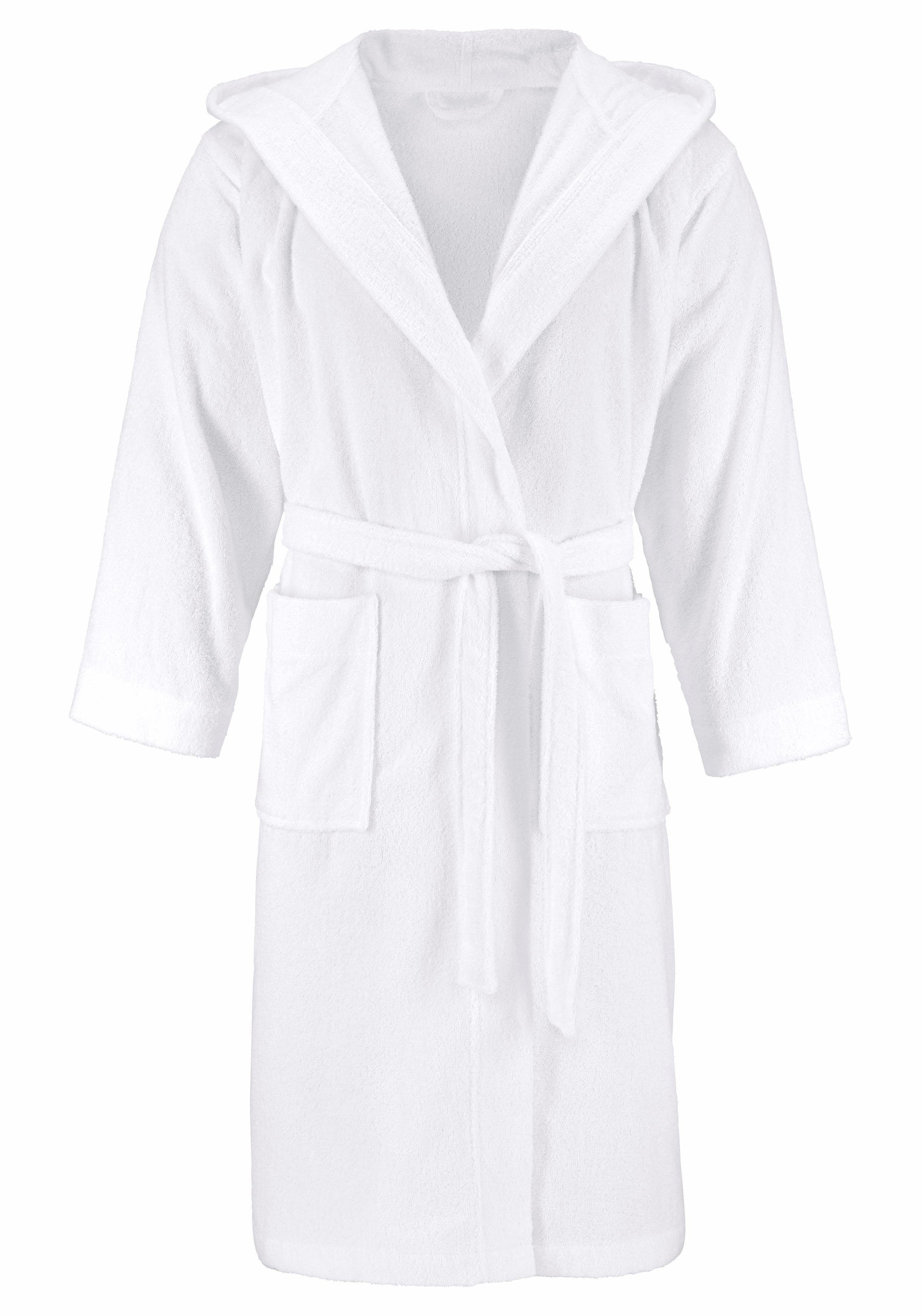 - UNISEX DESIGN: Tijdloze badjas met capuchon en logoborduursel - Unisex badjas voor dames en heren, verkrijgbaar in de maten XS - XXXL. Standaardlengte 120-125 cm Extra lengte 130-142 cm