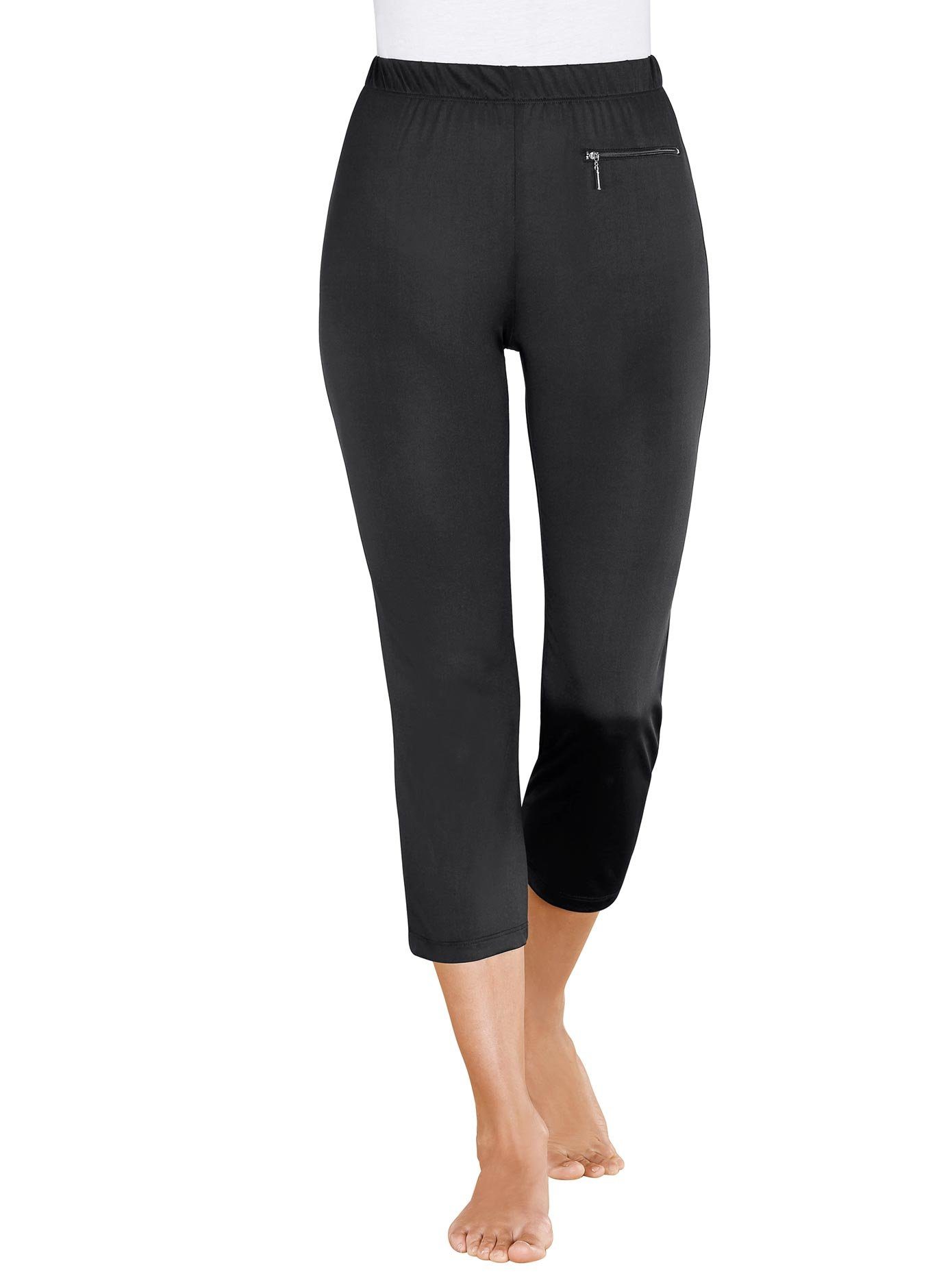 Praktisch, comfortabel en gemakkelijk in onderhoud! Vrijetijdsbroek in soepele kwaliteit. Met rondom elastische band en 1 horizontale ritszak voor. Lengte ca. 80 cm. 95% polyester (microfiber), 5% elastan. Machinewas.