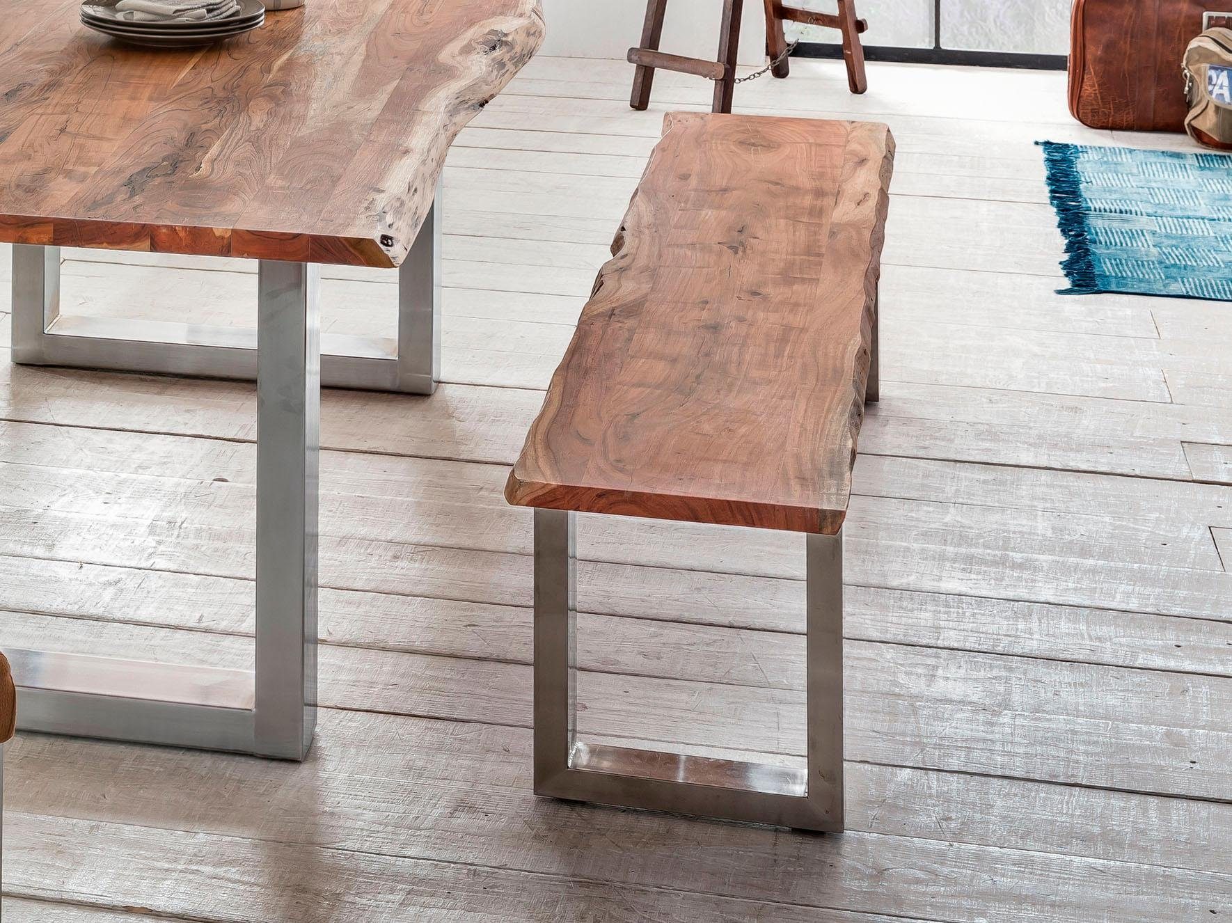 Home affaire Zitbank Manhattan in boomstam-look en frame u-model van edelstaal