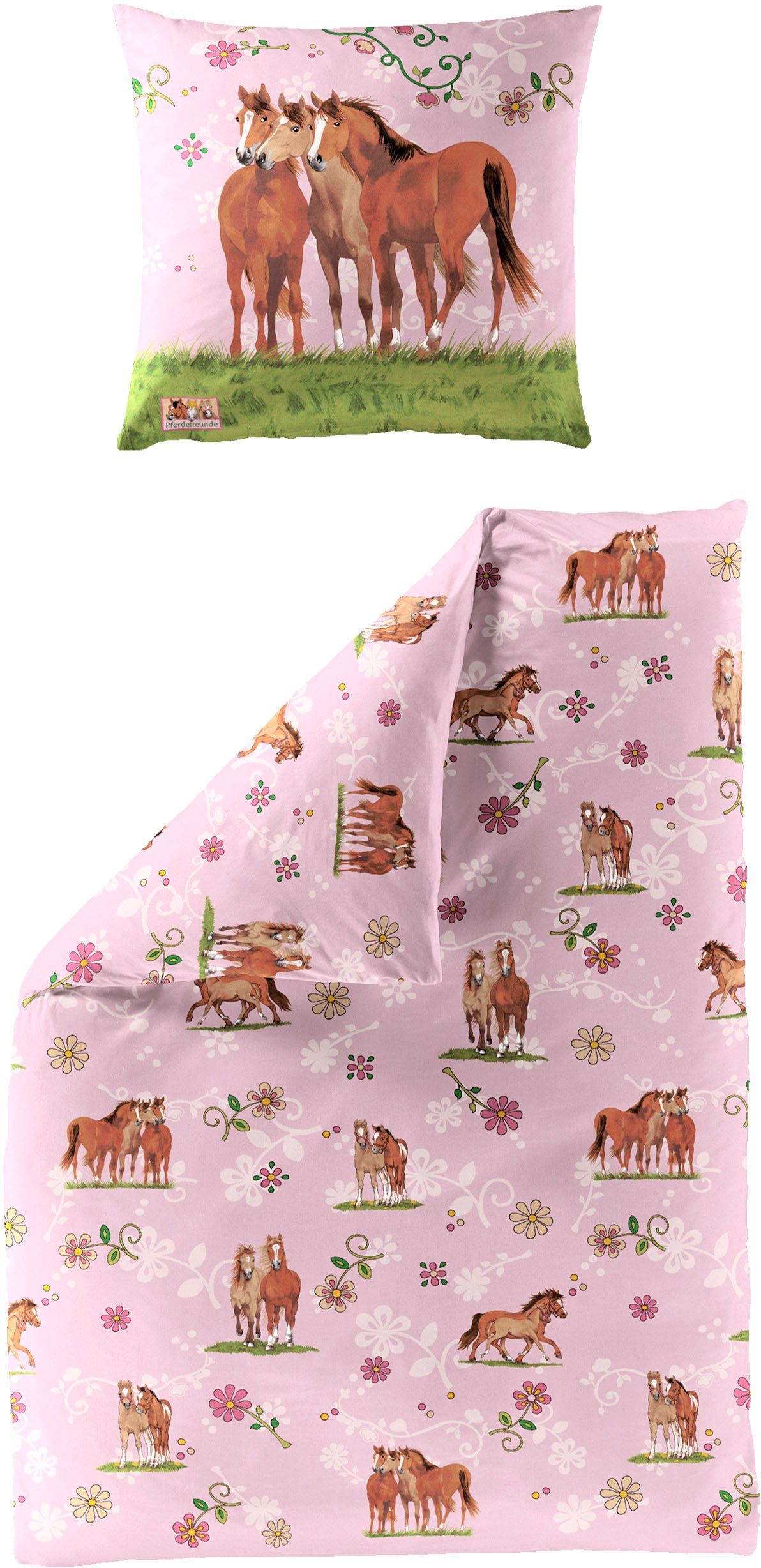 Pferdefreunde Kinderovertrekset Paarden Renforcé, 100% katoen, paardenvrienden, gemakkelijk in onderhoud (2-delig)