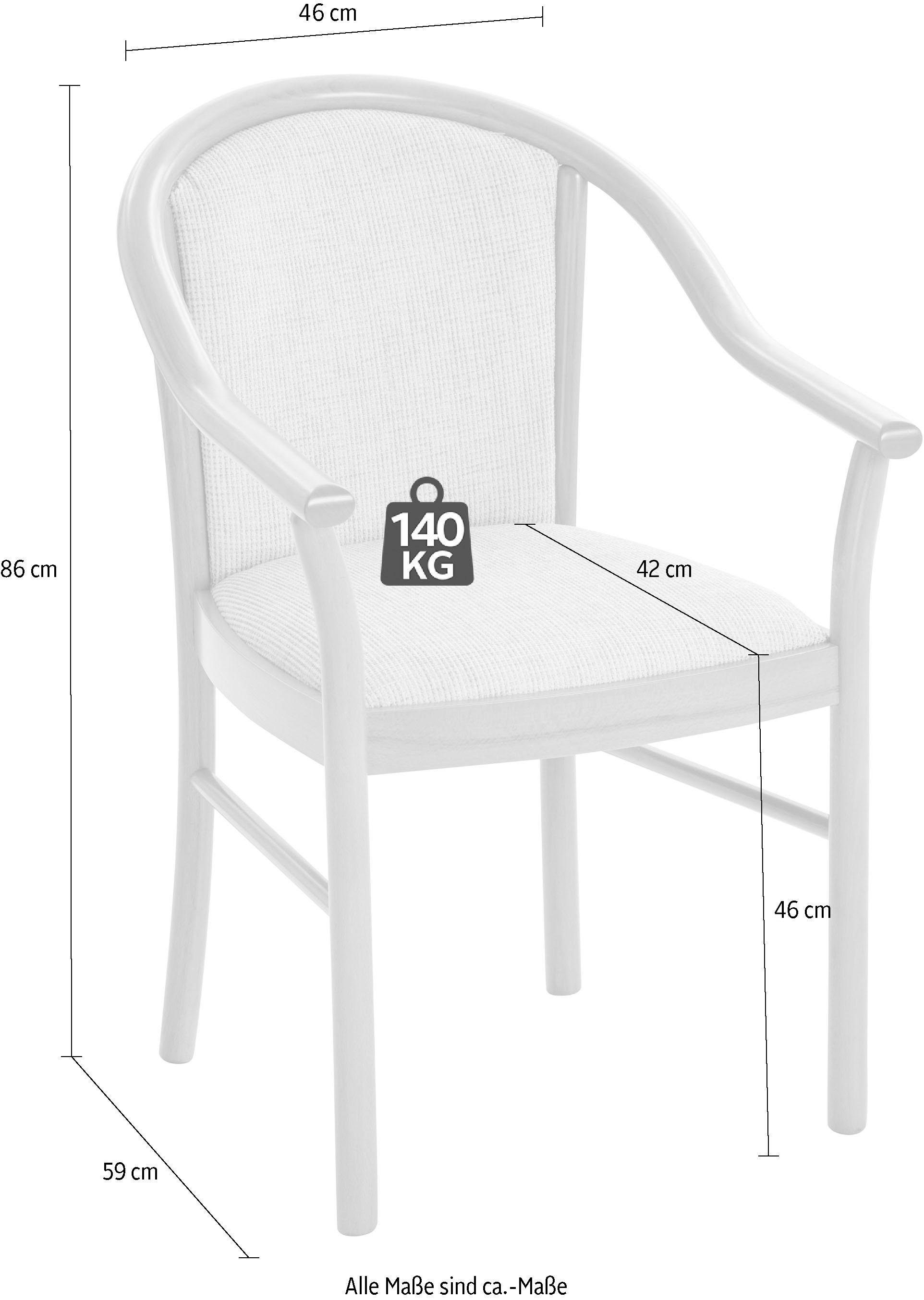 Nuttige informatie | Details:.frame van massief hout.Frame van beuken.Zacht verdikte zitting en rugleuning.Tijdloos design.Massief, FSC®-gecertificeerd hout.Het hout is gebeitst.Draagvermogen 140 kg.Artikel wordt gemonteerd geleverd.Afm.:.totale afm. (bxdxh): ca. 56x59x86 cm.46 cm zithoogte.86 cm hoogte rugleuning.46 cm zitbreedte.42 cm zitdiepte.63 cm hoogte armleuningen.Alle afm. zijn ca.-afm..Informatie over leveringssamenstelling en montage:.voorgemonteerd.Bekleding/kwaliteiten:.structuurstof.Kunstvezel.62% polyester, 38% acryl.Materiaal:.massief hout: beuken.Massief, FSC®-gecertificeerd hout: beuken.Stoelpoten van beuken.Frame van beuken.Onderhoudsadvies:.onderhoudsadvies voor onbehandelde/gelakte meubelen van natuurhout:het oppervlak is het beste schoon te maken met een vochtig doekje.Let op: oplosmiddelhoudende reinigings- of glansmiddelen mogen niet gebruikt worden.FSC®-gecertificeerd:.het keurmerk FSC® geeft aan, dat je met de aankoop van deze artikelen achter verantwoorde bosbouw staat - volgens de strenge ecologische, sociale en economische eisen van de Forest Stewardship Council® - en de natuurlijke hulpbronnen ontziet. |