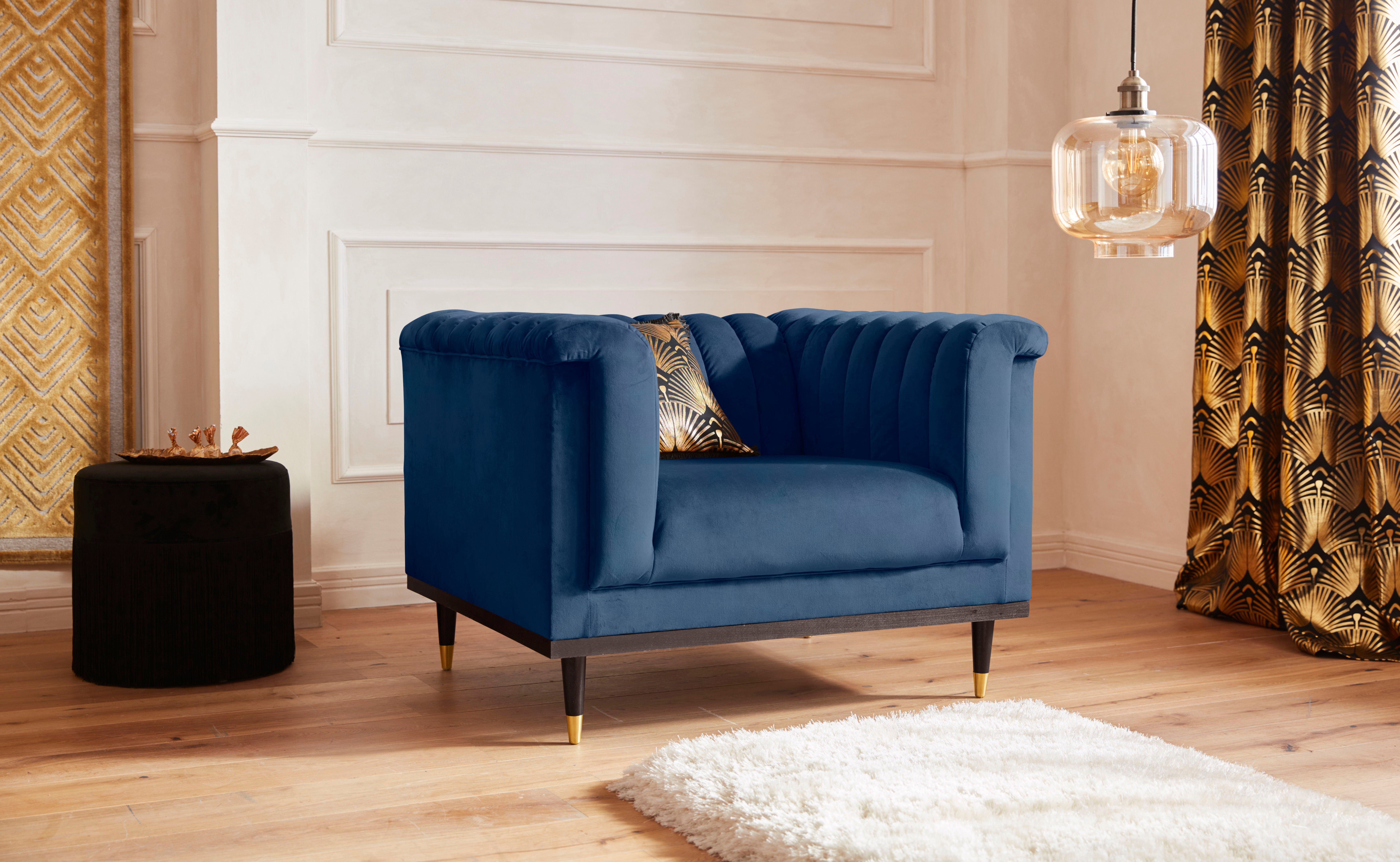 Home affaire Fauteuil Chamby met houten rand onder en stiksels bij de leuning