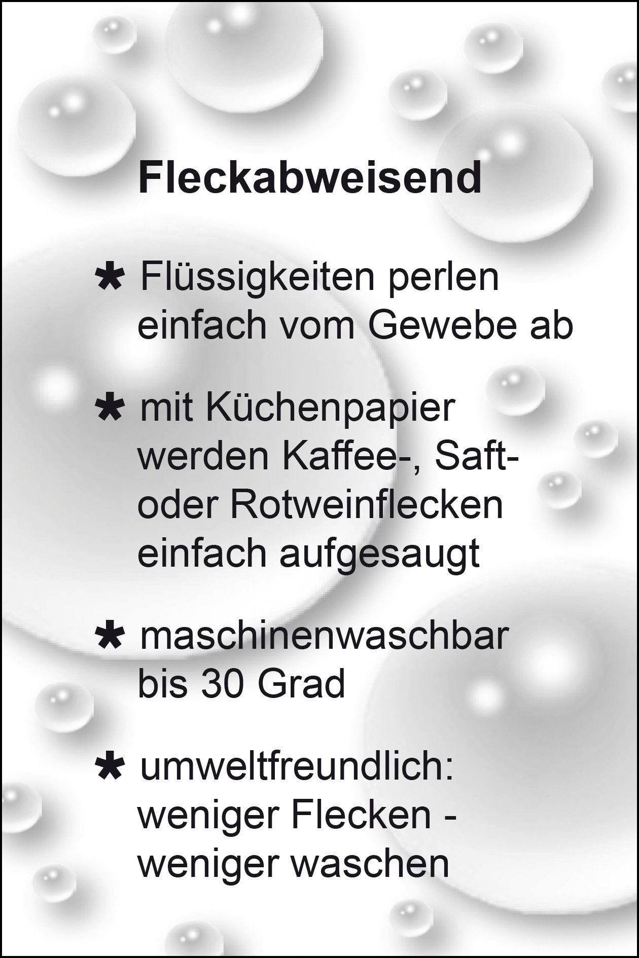 Onderhoudsadvies | Niet bleken | Kan niet in de wasdroger | Matig heet strijk (150°C) | Voorzichtige reiniging met koolwaterstofoplosmiddel | Machinewas op 30 °C |