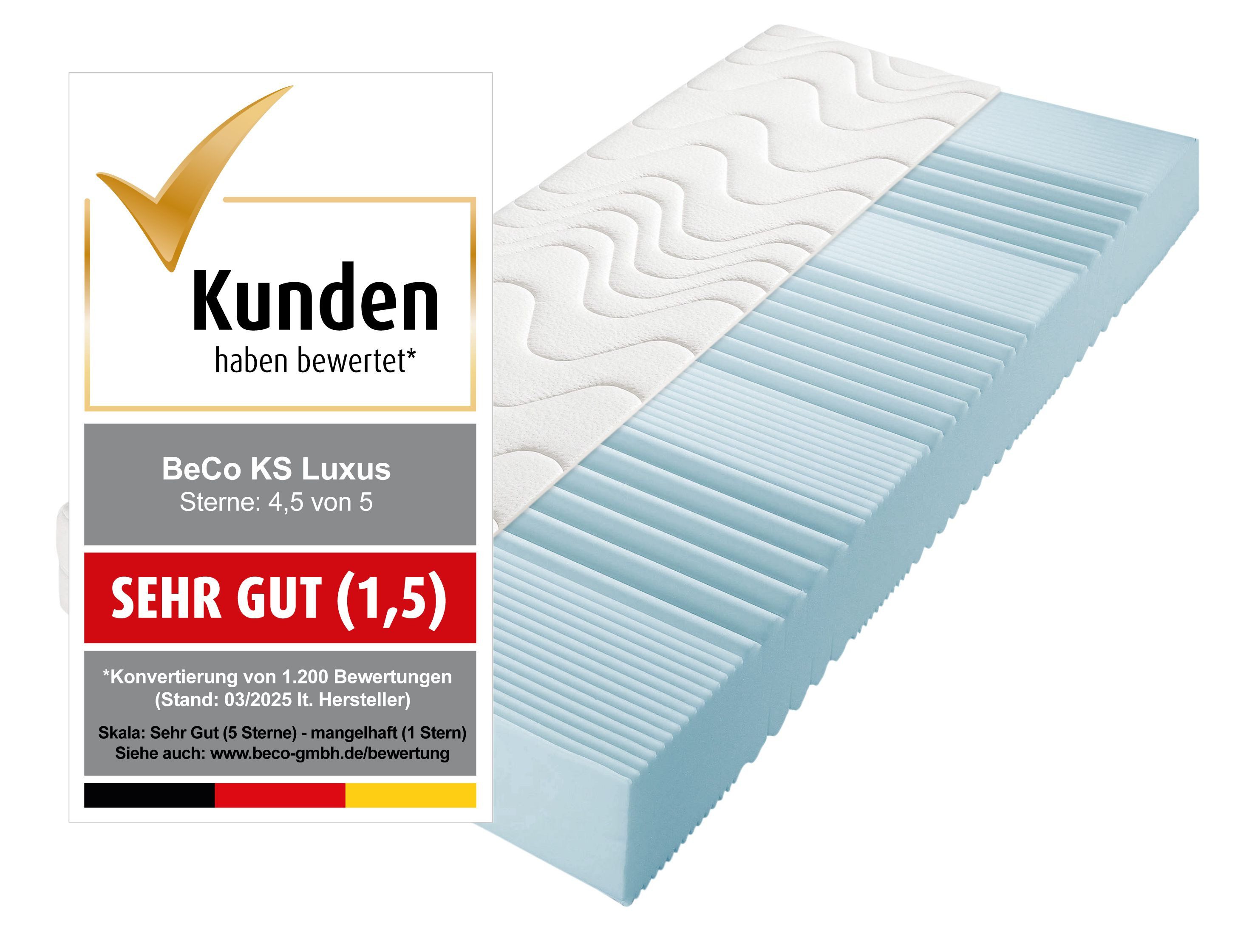 - Comfortschuimmatras Matras gigant trio KS, luxe-matrashoogte, in diverse afmetingen...BecoOorspronkelijke prijsAdviesprijs € 649,00Korting- € 309,01Huidige prijsvanaf € 339,99